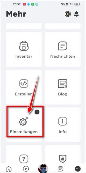 3、什么都不用看,直接往下拉,看到一个齿轮图标(Einstellungen)点击下,这个是设置选项;