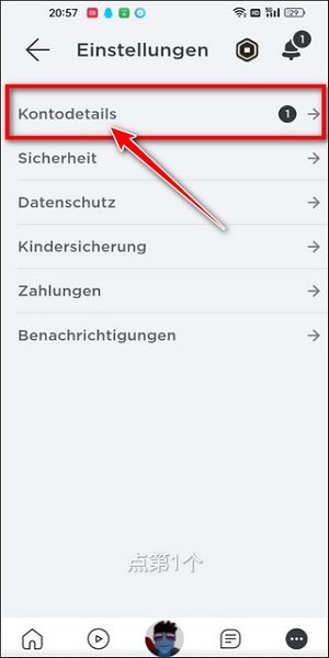 4、接着点击第一个“Kontodetails”选项;