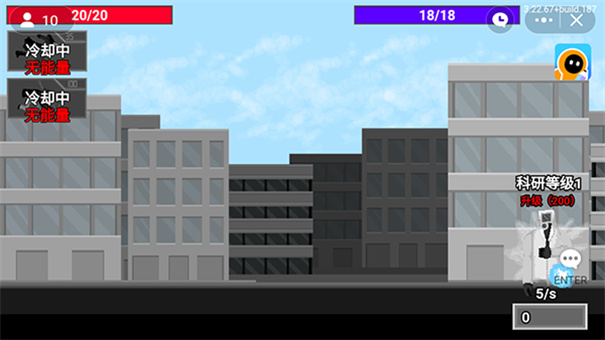 3、进入游戏内点击左上角可派出我方监控人,派出一个监控人后会有一定的冷却时间,右下角代表能量,需要能量你才能不断派出监控人,必要时可对能量进行升级。