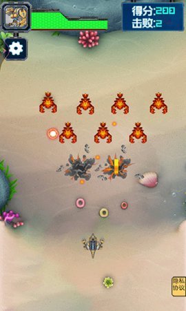 螃蟹争霸游戏是款趣味螃蟹争夺战竞技手游,操控你的武器,和虾兵蟹将进行战斗。类似雷霆战机的玩法,你需要使用各种武器攻击这些海洋生物,还要及时躲避它们的攻击,看你能够消灭多少螃蟹大军!