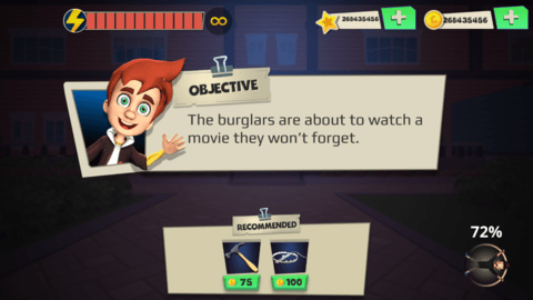 (c).游戏的玩法非常的新颖有趣,需要利用各种有用的道具,将这两个强盗打得无法还手,轻松的将其解决。