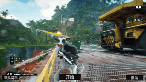 (C).开放世界的动作射击冒险游戏,变成一个无法无天的奶牛在地图中战斗。