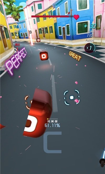 三.感受音乐的节奏来指尖滑动的畅快体验,游戏将会有多种不同的颜色的方块出现,在重叠的那一刻轻松将其切割掉吧