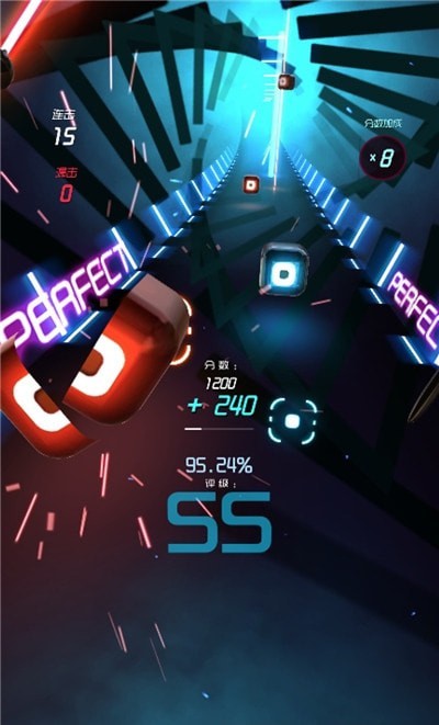 三.本作是一款动感十足的音乐节奏类游戏,玩家将会手持两把不同颜色的光剑,爽快的利用光剑来不断切割迎面而来的方块。并且切割的时机越重合,玩家获取的分数也将会越高