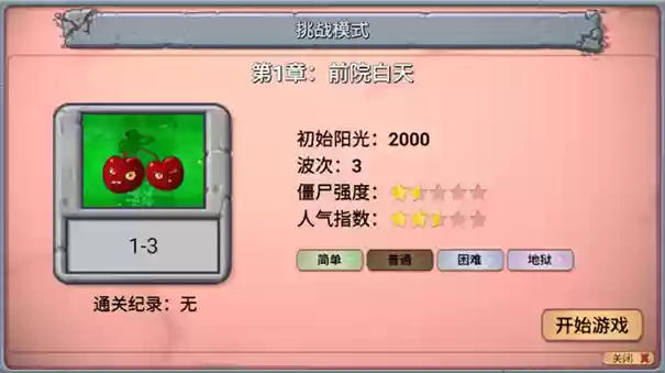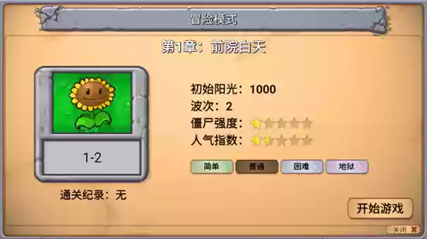 2、点击冒险模式后可以选择想要游玩的关卡和难度。