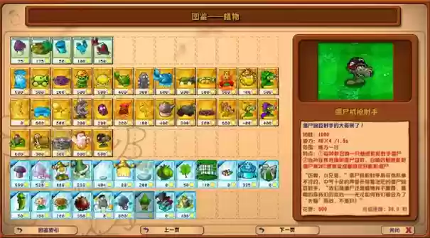 1、每个植物都有它的专属图鉴,你可以在图鉴上清晰的看到它的技能说明和效果。