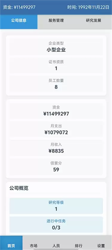 通过完成任务获得经验和资金,提升公司等级。解锁新的建筑设施、研究项目和业务领域,扩大公司在行业中的影响力。
