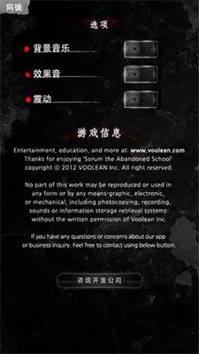 ++++++被遗弃的中学++++++The abandoned school++++++++++++是一款以冒险为主的恐怖游戏,由韩国Voolean工作室开发制作完成。游戏画面以黑白图片为主,搭配恐怖的背景音效,带领玩家穿越到废弃学校的教学楼中,游戏效果十分出众。游戏背景故事建立在两起死亡案件上,玩家跟随主角抽丝剥茧,最终找到弟弟和女友死亡的真正原因。