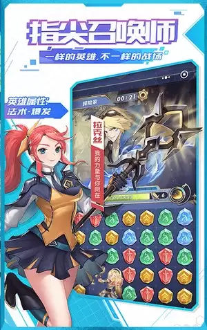 lol指尖召唤师是款休闲消除游戏,游戏的玩法非常的简单,玩家在经过简单的新手培训后就能够操作,玩家在游戏中进行消除任务,只有三个或者三个以上的宝石连城一线就能够消除,快来下载吧!