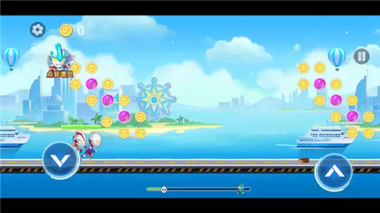 3.在你让奥特曼跑酷的时候尽可能多的搜集那些游戏金币,你可以自由的上下跳跃搜集