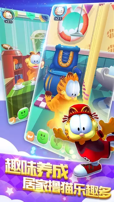 一.互动丰富:游戏中加入了更多的互动元素,如玩家可以与加菲猫玩抓老鼠游戏,或一起看电视,增强了游戏的互动性和趣味性。