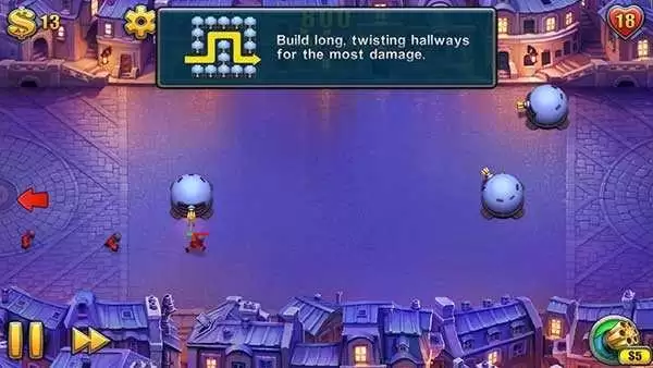 (三).炮塔和道具的搭配使用可以给予敌人极大的打击。玩家的操作目的是在敌兵到达终点之前将其消灭,每击杀一个敌兵都会得到数量不等的金钱,金钱可继续用于购买防御塔;