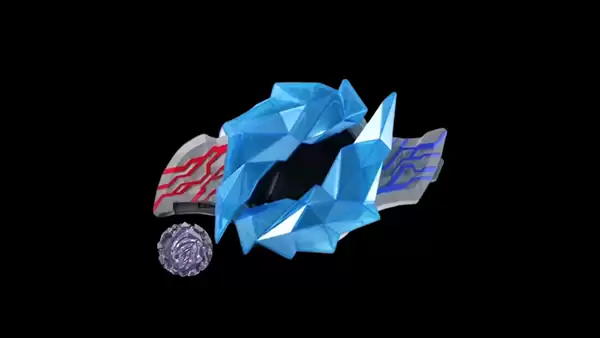 二.变身过程中,中间的水晶会展开露出显示屏,出现红色和蓝色圆圈旋转,不同的晶石特效都不一样的。