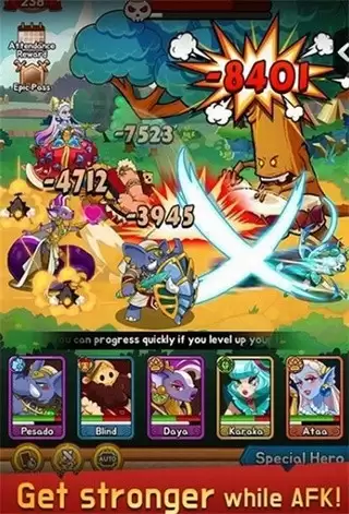 (a).史诗合并英雄游戏,组成一个英雄团队,然后点击开始,英雄们将会自动战斗。