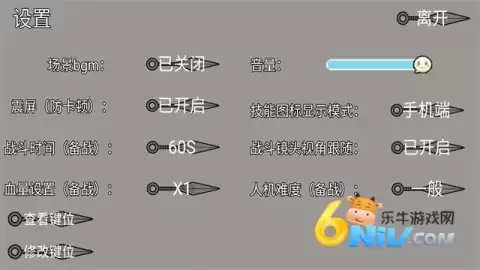 2、点击右上角设置按钮,玩家可以调整音量及键位设置。