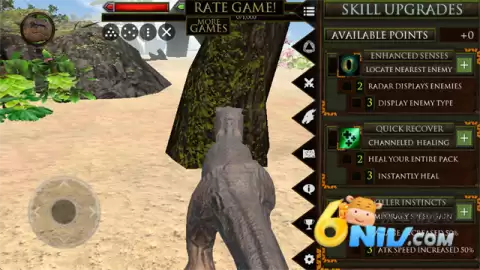 1、终极恐龙模拟器游戏开始后,利用左下方的虚拟摇杆进行移动,右下角按钮用于加速、撕咬和发出威胁吼叫,灵活的操作是胜利的关键。