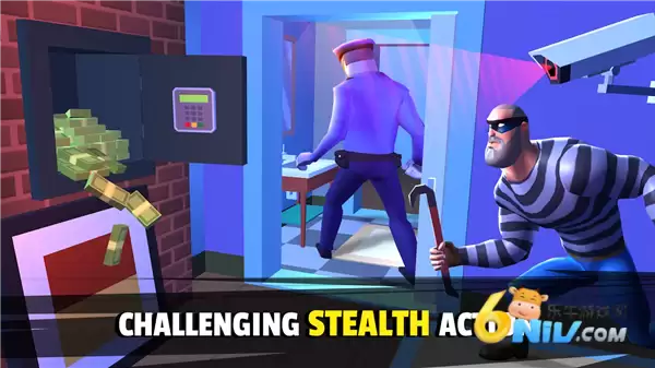 疯狂的强盗2是一款FPS模拟小偷手游,采用卡通风格场景。玩家扮演强盗破解安全系统、使用工具侦查、避开或击倒守卫,窃取战利品后到黑市兑换装备。需躲避监控和警察,被捕后可越狱再次盗窃,所得金钱用于购买道具装备。