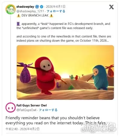 事情的起点颇具戏剧性。4月1日,有爆料者声称在相关开发文件中挖出了一份“隐藏计划”,里面白纸黑字地写着《糖豆人》的“大限之日”——2026年10月11日将永久关闭服务器。截图一出,瞬间点燃了玩家的焦虑,讨论热度迅速攀升。