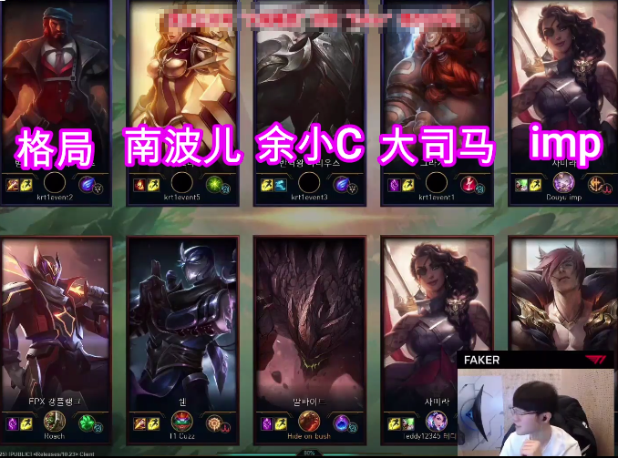 而就在最近,某鱼平台为了满足观众们的这一好奇心特意请来了世界一流战队T1和该平台最强的几名游戏主播进行PK。这场对局中代表平台出站的主播有:格局、南波儿、余小C、大司马和IMP,另一方则是派出了由Faker率领的T1战队。