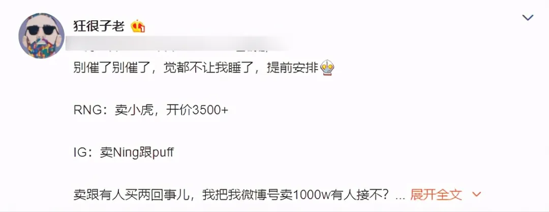 毕竟3500w卖现在的小虎,怎么算都是RNG赚。所以这也是为什么RNG战队的老板敢将小虎挂牌出售了,卖了血赚,留下也可以接受