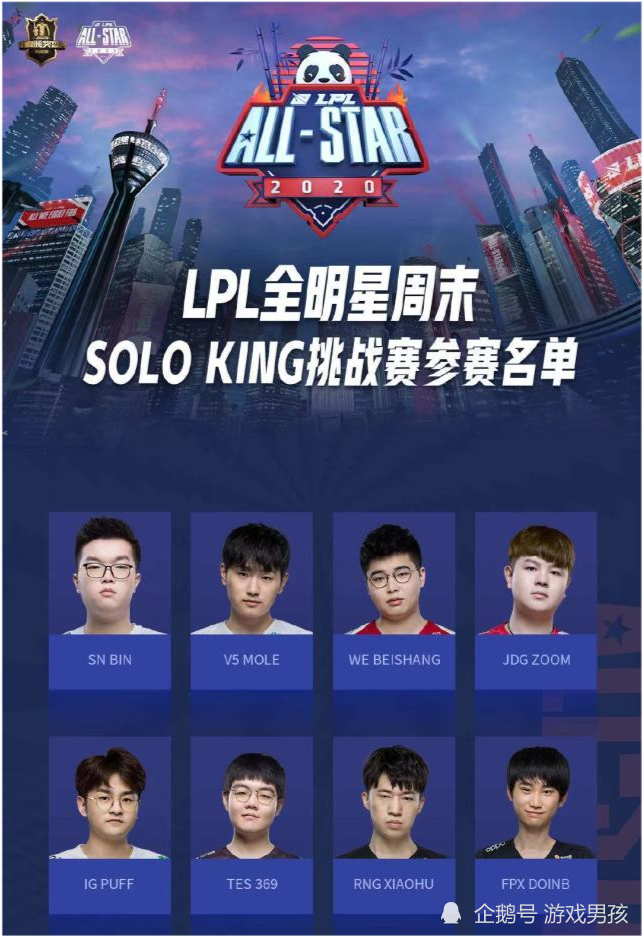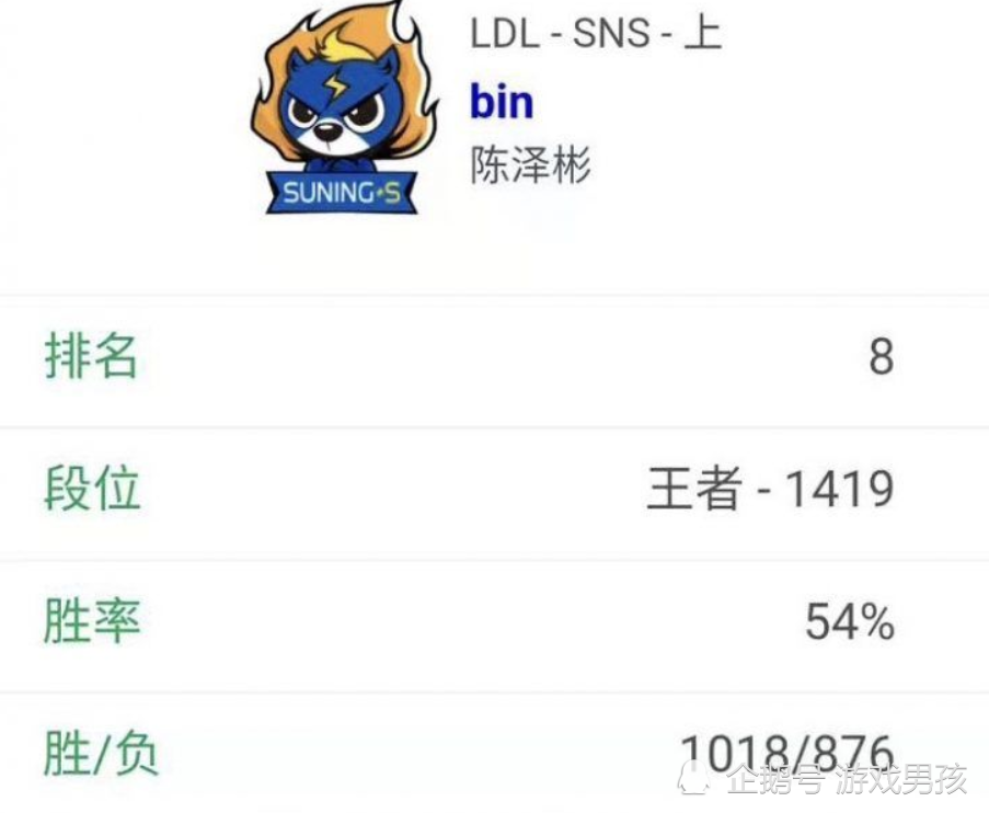 至前一阵子,LOL全明星周末统计数据显示 : Bin入选SOLO KING挑战赛,期待他的精彩表现吧。