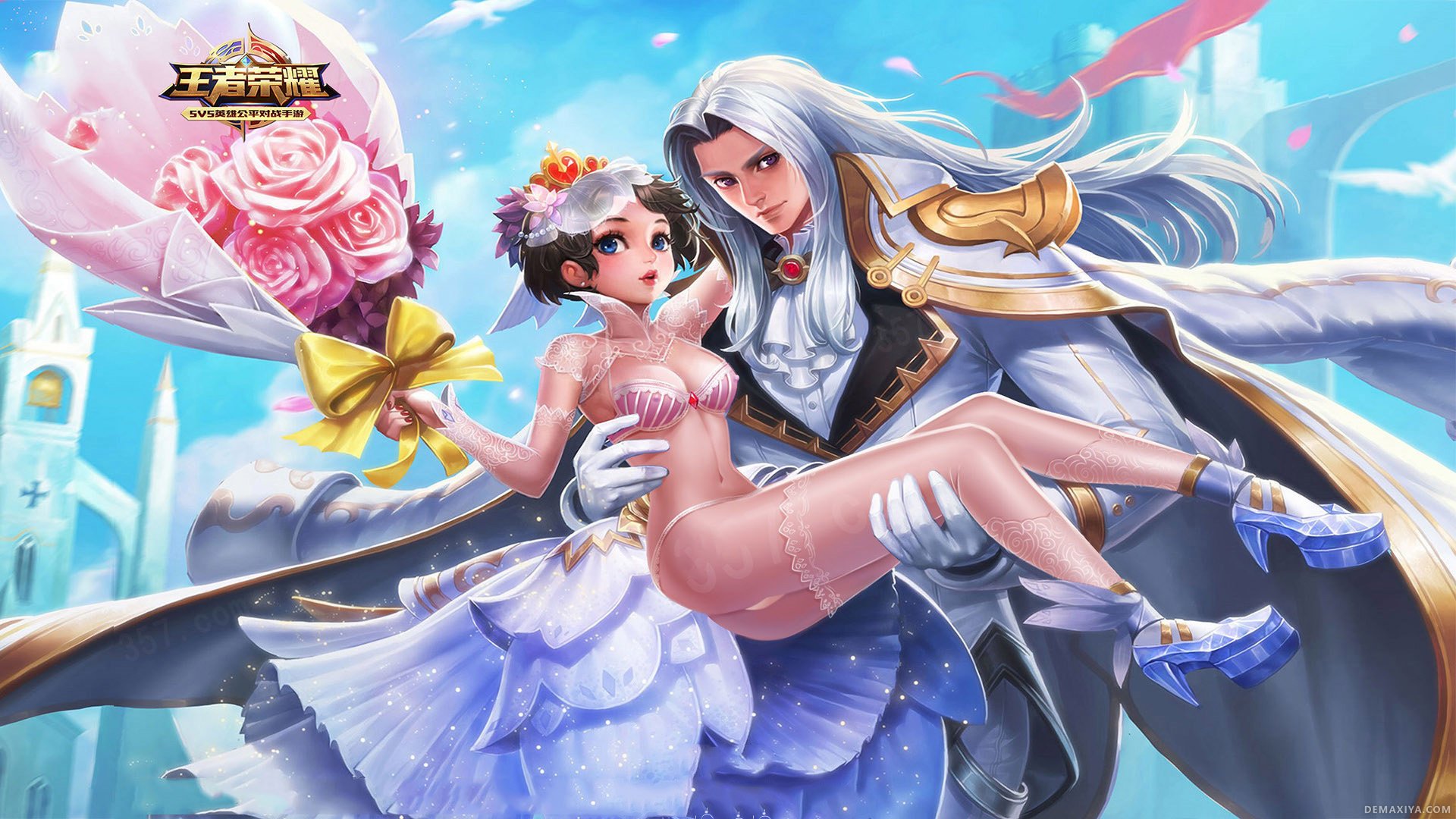 王者荣耀女英雄去衣图:小乔纯白花嫁去衣图