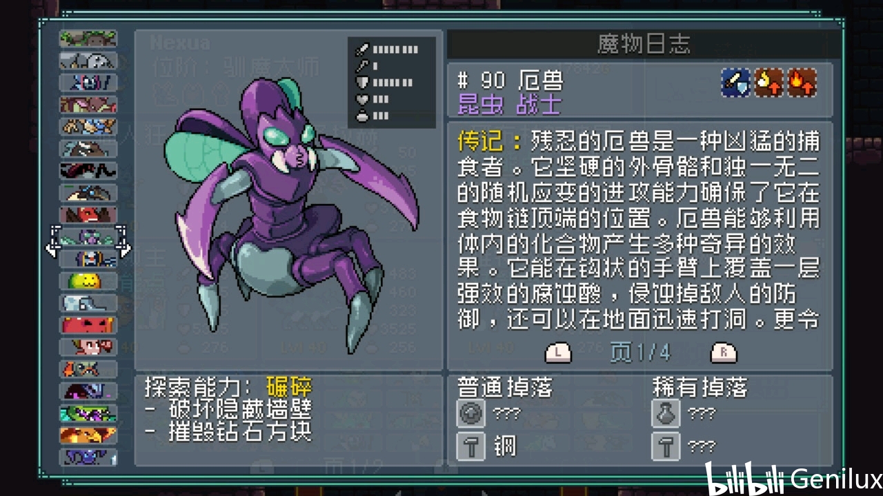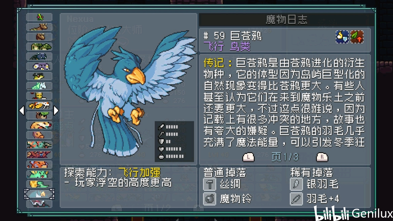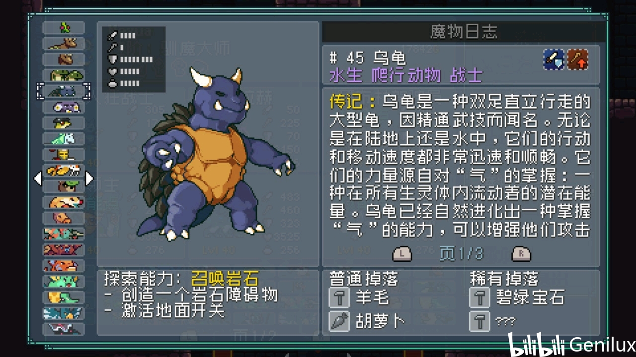 剩下11-101的怪物图鉴和进化配方魔物进化配方列表苍鸭+ 银羽毛= 巨苍鸭熔岩虫+茧= 熔岩蛾格绿米+ 星屑= 格鲁鲁小牛头人+ 冬之