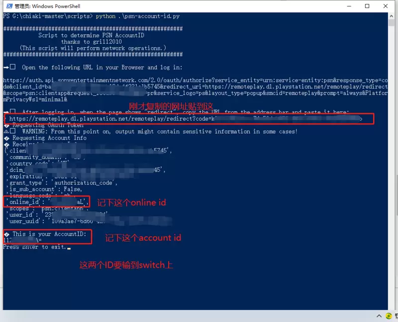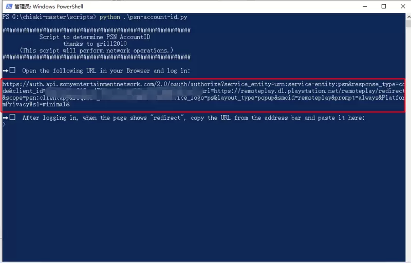 执行完出现一串网址,复制到浏览器打开,打开后如下:输入要串流设备的psn账号密码