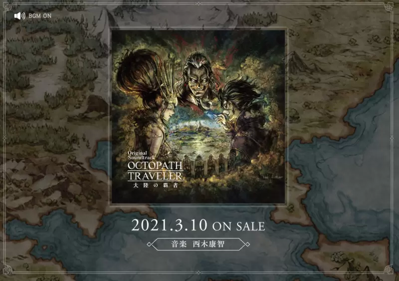 近日,SE官方宣布:《歧路旅人大陆的霸者》原声音乐将于3月10日发售,售价为3200日元(不含税),包含3张CD,音乐负责人为西木康智。《歧路旅