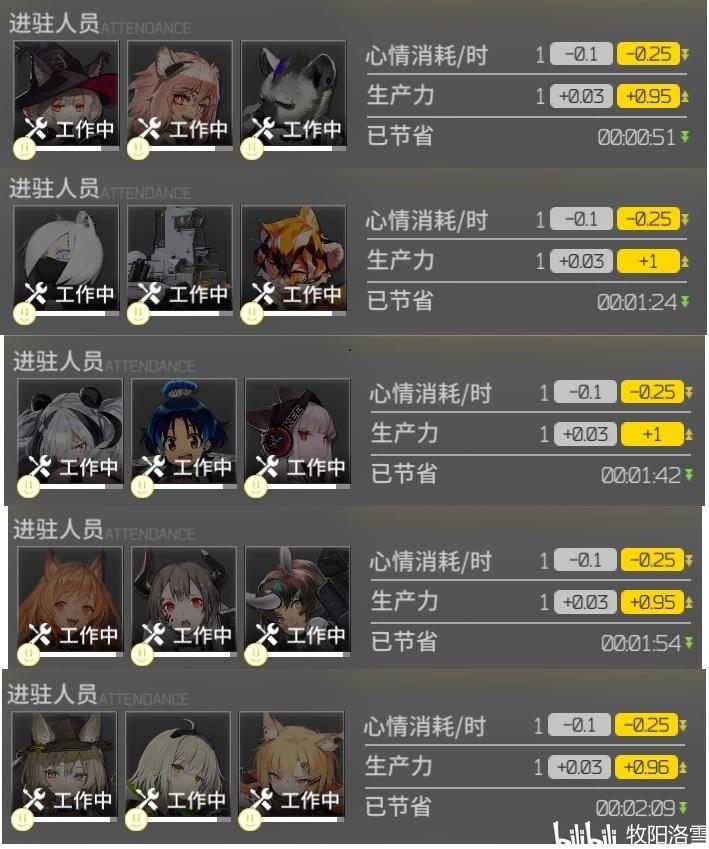 至于制造站,兔兔/诗怀雅+4buff工具人的控制中枢提供0.25的心情buff,理论上可以站36小时,但是游戏不能影响正常工作生活,所以30~34小时换班比较舒服。实际操作也不需要那么严格,记起来的时候去换就行,除非你真的完全忘记有这回事,否则都是不会精神涣散的。