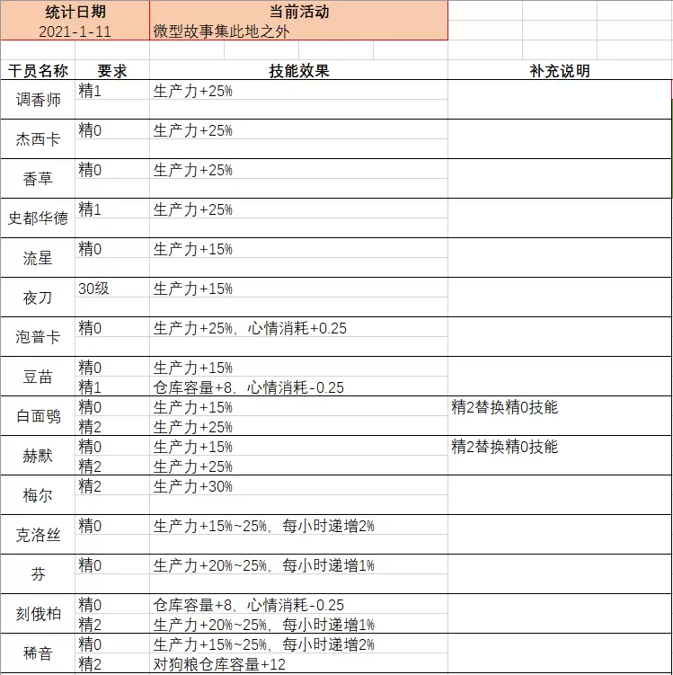 0X01 一些废话此地之外又带来了一波好用的基建干员,作为老资本家,当然不能放过任何一个压榨干员剩余价值的机会。这篇blog对大部分老勃士
