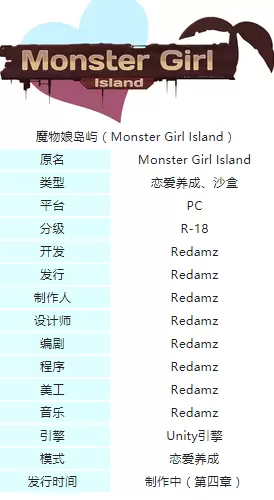 魔物娘岛屿是由Redamz于2015年在patreon上众筹开发的一款恋爱养成动♀作射姬游戏。游戏团队只有Redamz一个人,简直是黄油界的八爷,五边形战士。游戏以章节的方式进行发布,但因为是一个人制作,所以进度很慢,已经6年了只出到第四章。