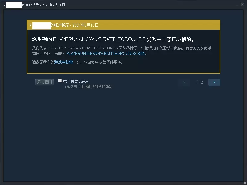 注意:解封仅适用于因Steam账户被盗,他人使用外挂被封的情况。因自己确实有开挂行为被封的无法解封。当然也可以尝试,但大概率不可能解除