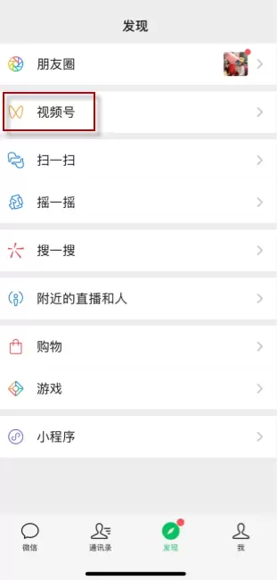 1、第一步打开【微信】,点击下方的【发现】页面,在页面中找到【视频号】功能。