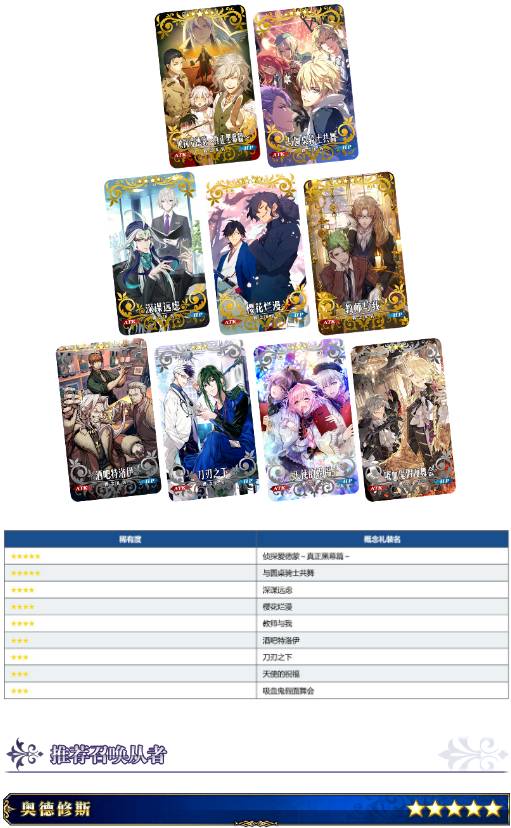 ◆「迦勒底男性精选2017~2020概念礼装推荐召唤(每日替换)」推荐召唤内容◆