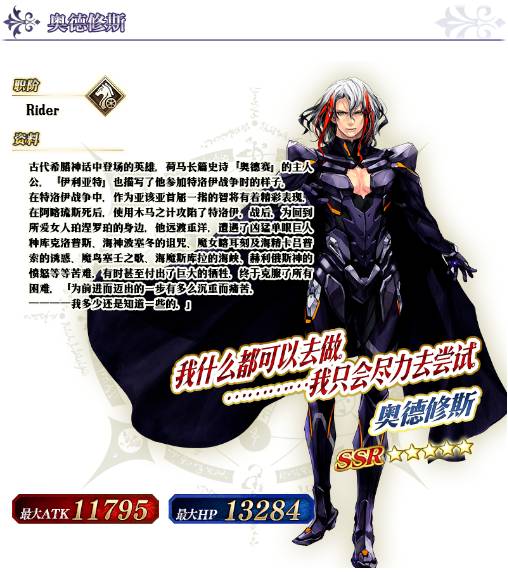 ※以上的「★5(SSR)奥德修斯」的立绘为灵基再临第2阶段。