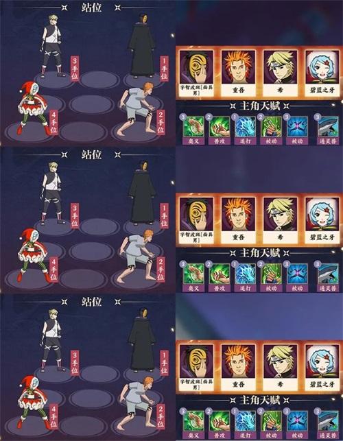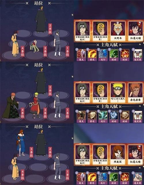 ◆优点:鸣人【仙人模式】的分身可以吸引宇智波鼬【须佐能乎】攻击前排且不会被集火,须佐鼬菜鸟回合的输出能力非常恐怖,配合面具男的高频率必杀触发被动,该阵容的输出能力相当可观。