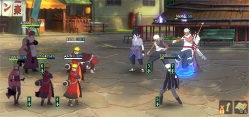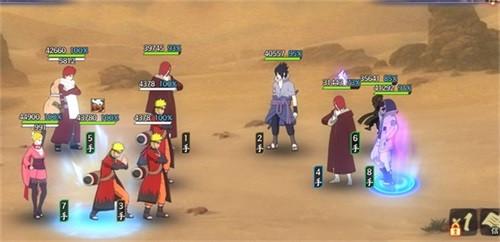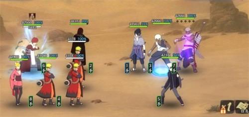 本回合开始由于敌方被减员后,输出和生存能力都有所降低,我方正常进行普攻,敌方佐助【须佐能乎】对我方风主使用奥义,无需理会,只需要用我爱罗【五代风影】或者是鸣人【仙人模式】的奥义盯着敌方大野木释放即可,后续正常输出收拾残局即可。