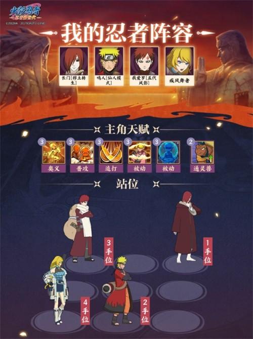 根据以上技能简析,我爱罗【五代风影】可以搭配的忍者主要是以风属性忍者为主,所以推荐阵容如下: