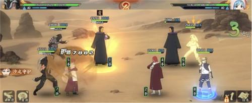 菜鸟回合,使用我爱罗[五代风影]奥义定身敌方大野木,当然敌方会使用土主奥义解除控制,但无需担心,在我方我爱罗[五代风影]结界的限制下,敌方的额外普攻也只能转换为护盾。由于傀儡的存在,敌方的全部火力都落在了傀儡身上,且无法衔接追打。