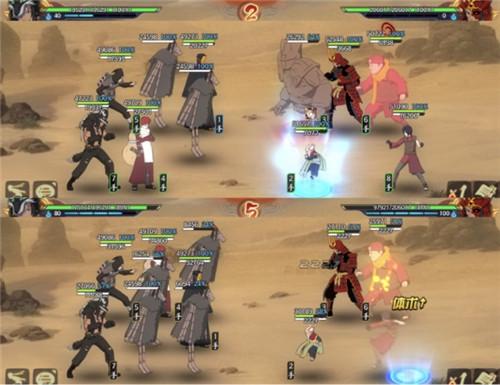 第二回合,我方长门[秽土转生]奥义鸣人[仙人模式],骗出敌方波风水门[青年]的打断,然后使用勘九郎[忍界大战]和我爱罗[五代风影]奥义进行输出,可以看到,即使在长门[秽土转生]奥义没打出伤害的情况下,敌方也已经失去了战斗能力,接下来风主奥义刷新,又可以再下一回合造成不俗的伤害。