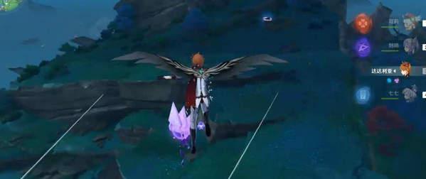 2、然后利用雷极的传送到空中,使用风之翼滑翔来到达图中所示的悬崖上;
