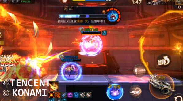 在boss释放技能后,尽量快速躲避至屏幕左侧或右侧,避免进入扇形区域。若来不及避让,就观察好火球的位置及走向,配合护盾类技能,躲避于火球之间。