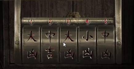 把获得的旗子拿来开那个门,门打开之后继续收集东西,有一个锁是大凶之内的,玩家们需要按照手册中的大吉大凶的对应,按照图案的提示来打开,可以看见一个招财猫。