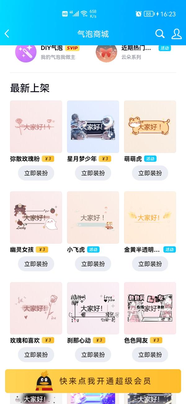2、点击【气泡】,选择想要的气泡样式装扮即可。