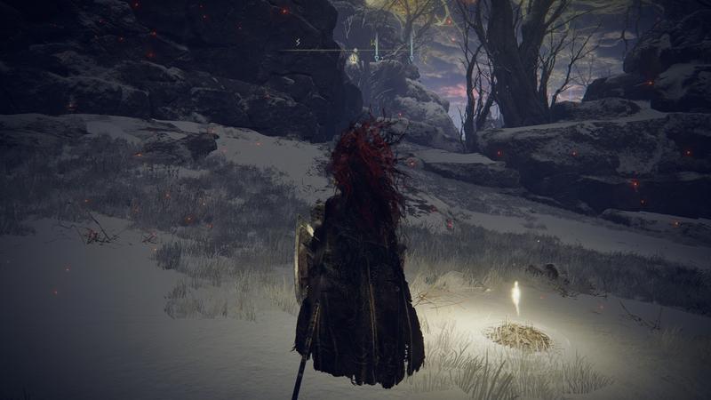 之后跟着路往前走就行,会到达第一个路标和篝火:萨米尔废墟