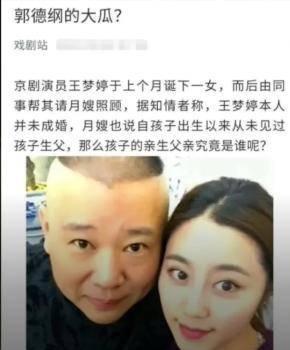 文章中称,王梦婷曾在一月份的时候生下一个女儿,可这个时候的王梦婷还没有结婚,而照顾孩子的月嫂也是一直未见孩子的亲生父亲。如果仅是这样和郭德纲并没有太大的联系,可接下来的内容却是将王梦婷女儿亲生父亲的矛头直接指向了郭德纲。