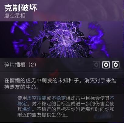 斗争风格模组选择坚韧之井,拾取虚空元素井后提供5秒的50%减伤,更好地维持住蓝盾来触发进攻堡垒星相效果