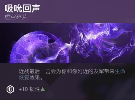 近战最后一击会为自身及周围队友提供一个触出现命恢复的效果,因此该碎片效果与恢复属性挂钩,恢复越高生命值回复就越快