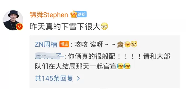 但就在不久前,周楠在发微博时,不仅提到了朋友和家人,还提到了恋人,疑似已经脱单了。值得注意的是,就在周楠的评论区,周锦舜高位评论到表示雪后大,恋人互动中透露出丝丝暧昧,被不少网友怀疑他们两人私下已经走到一起了。